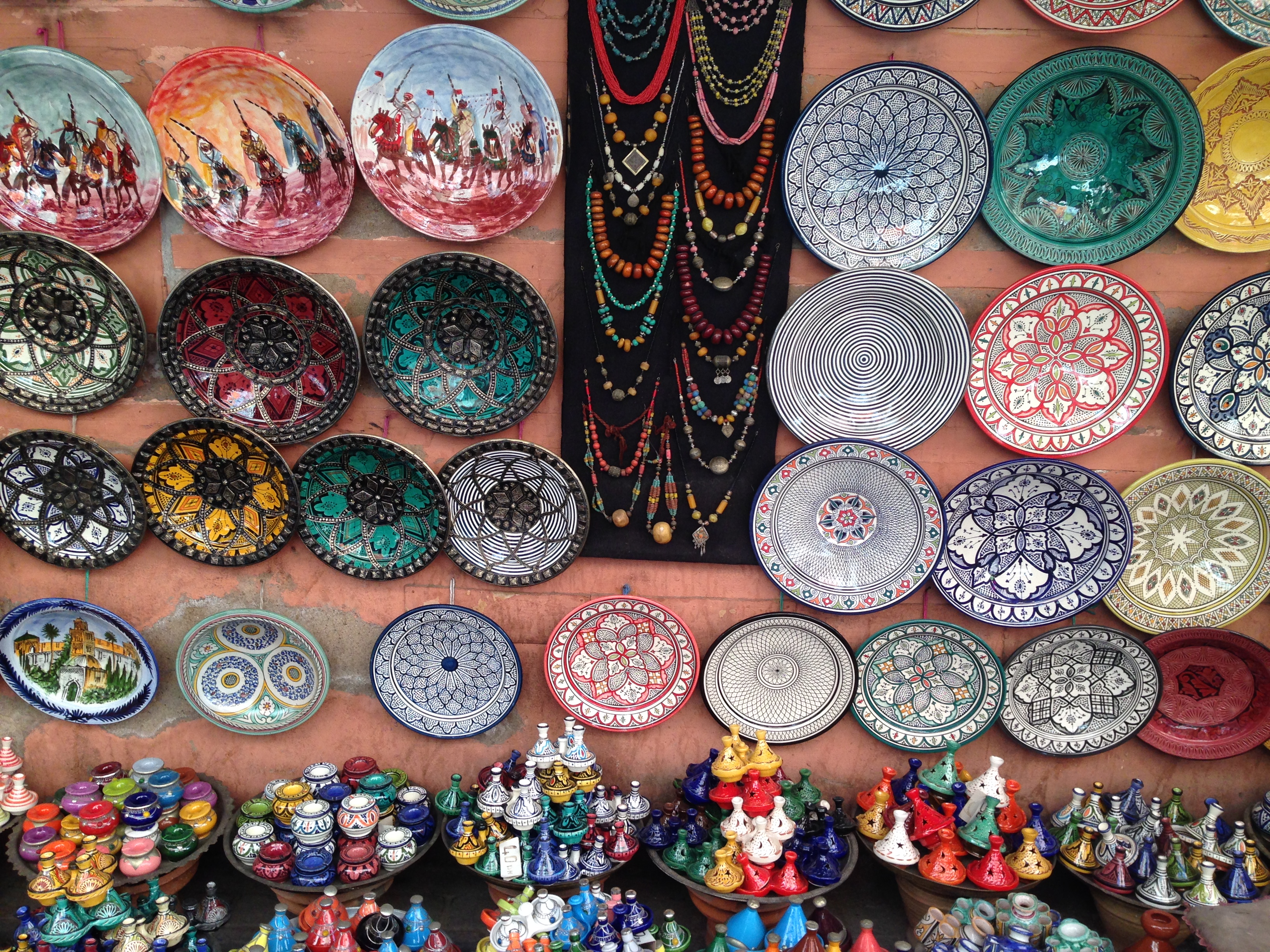 Pochi passi, trasportata dagli odori inebrianti e dal frastuono, e sono nel pieno del souq. La confusione è la regola e l’unicità: non è possibile muoversi senza esser invitato a fare un tour alla “Festa dei Colori” o al Mercato del Ferro o al ristorante più buono di tutta la medina. Si cammina tra distese infinite di merci d’ogni genere, perdendosi tra il fascino delle lampade arcobaleno, il profumo acre del puro cuoio e il tintinnare dei monili. I negozi sono spesso laboratori, case, luoghi di ritrovo e, inoltrandosi nei vicoli, ci si può imbattere in un fabbro mentre fonde il ferro o in un calzolaio che modella pelle colorata.