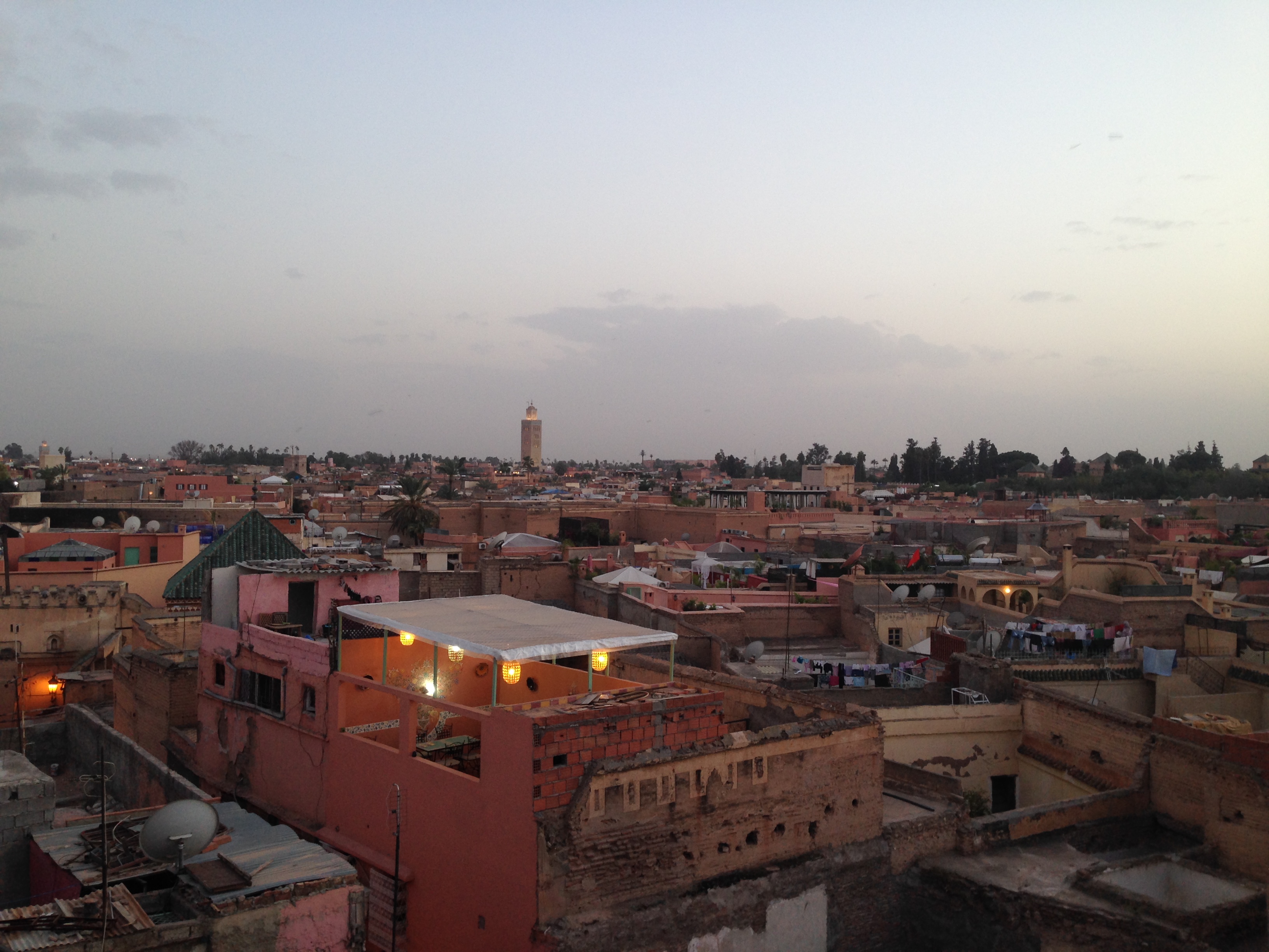 Appoggiati i piedi sulla strada marocchina, i miei occhi sono avvolti dalla luce e dal colore: il sole, alto e incontrastato, regna sulle infinite case rosse ed ocra. Mi trovo nella parte antica della città, la medina, dove i riad, le tipiche abitazioni marocchine, si disseminano disordinatamente lungo le strade strette e tortuose. Camminando tra le intricate vie, prima di entrare nel mercato, si notano le porte ampie ed imponenti -di legno scuro o di colori e decorazioni vivaci. Ma tra le spoglie mura color del sole si nascondono bellezze inaspettate: ogni riad è infatti un prezioso scrigno che cela al suo interno un’oasi, un cortile, una fontana, degli alberi. Come piccole rappresentazioni del Marocco, territorio estremo e d’estremi, di rosso e di verde, arido e sorprendente.