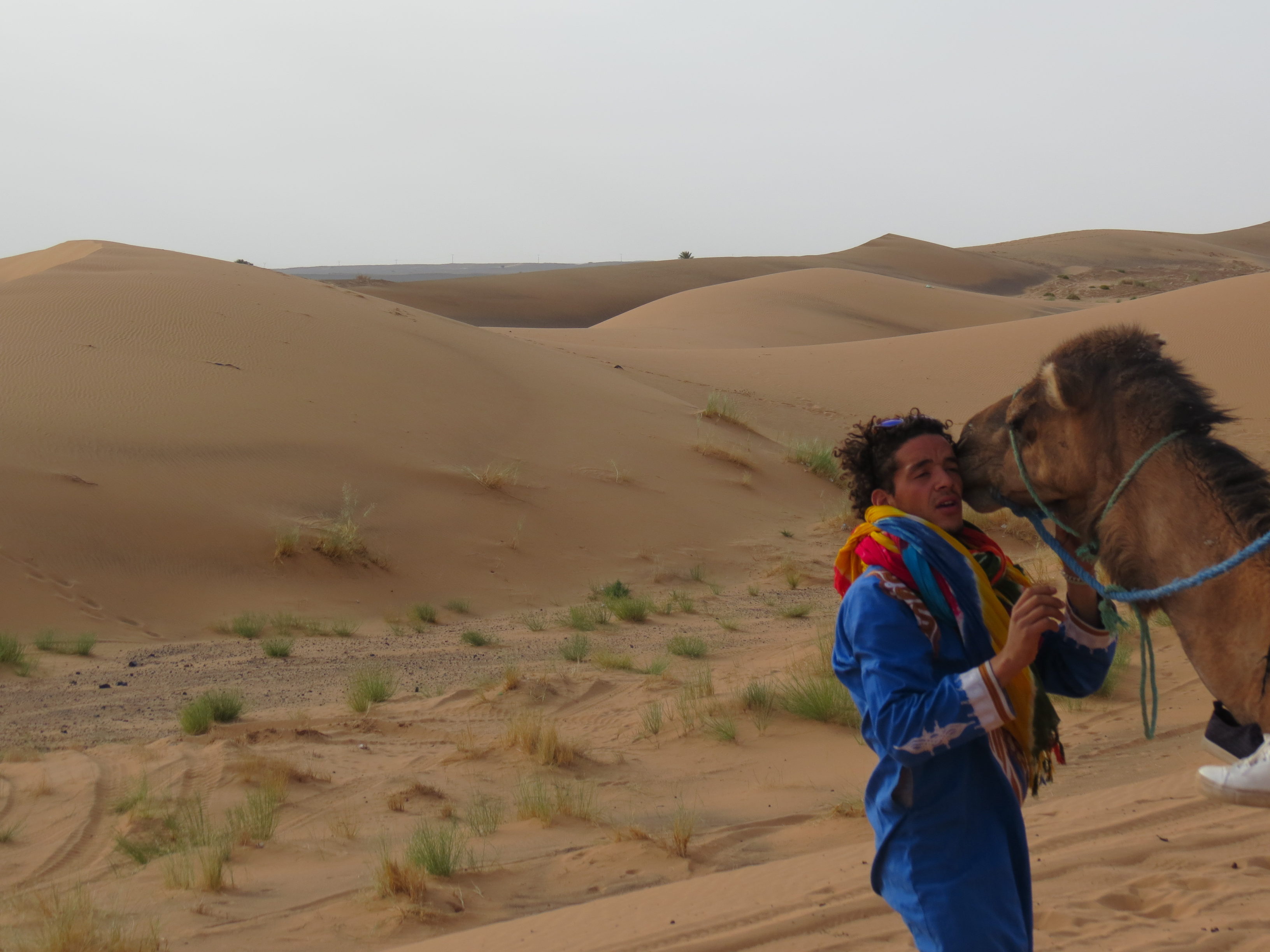 Pochi oggetti essenziali, due litri d’acqua e si sale sul proprio cammello, chen realtà è un dromedario. Dall’alto della nave del deserto, in carovana, intravedo le prime dune. La già aridissima vegetazione scompare e la sabbia muta, tutto si tinge di rosso. Eccoli, li vedo: sinuosi orizzonti di sabbia si stagliano nel cielo limpido. Si avanza lenti tra le onde bagnate di luce, lasciandosi alle spalle la cittadina e immergendosi nel deserto. Siamo soli nel nulla, guidati da un giovane berbero che ci porterà alle tende allestite per la notte. Il ragazzo avanza a piedi scalzi sulla sabbia rovente e conosce perfettamente il cammino così come conosce i suoi cammelli. Sulla via non incontriamo nessuno e niente se non qualche scarabeo e le leggere impronte della volpe del deserto: pochi eletti possono sopravvivere qui. L’accampamento berbero non offre alcun comfort: il bagno è uno per tutti e le tende hanno giusto la dimensione del letto, o meglio, dello spesso e duro materasso appoggiato sulla sabbia. Sono piccoli dettagli che rendono più speciale l’esperienza. Rapidamente cala il sole, e arriva la notte. È magia.
